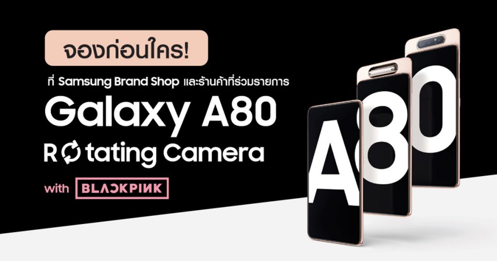 เหล่าบลิ๊งค์ (BLINK) เตรียมตัวให้พร้อม! Samsung ส่งโปรโมชั่นสุดพิเศษเอาใจ กาแลคซี่แฟนชาวไทยและสาวกของสี่สาว BLACKPINK กับ Galaxy A80 สุดยอดสมาร์ทโฟนที่มาพร้อมกับ Rotating Triple Camera นวัตกรรมกล้องหมุนได้ 3 กล้อง ครั้งแรกของโลก