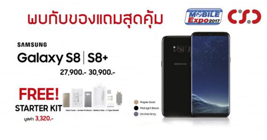 เริ่มงานวันแรก CSC ก็เอาใจสาวกนักช็อปด้วยการจัดโปรโมชั่นสุดคุ้มสำหรับผู้ที่ซื้อ Samsung Galaxy S8 และ S8 Plus ในราคา 27900 บาท และราคา 30900 บาท รับของแถมปกติฟรี Startter Kit มูลค่า 3320 บาท และของแถมพิเศษ ในช่วงวัน พฤหัส-ศุกร์ เป็น ลำโพงบลูทูธ , โซฟาแอร์ , ซัมซุงไวเลสชาร์จไลน์คอลเล็กชั่น และ CSC เซท 10 ชิ้น ในช่วงวันเสาร์-อาทิตย์ รับของแถมพิเศษเป็น กล้องติดรถยนต์ ไวเลสชาร์จเจอร์ และ CSC เซท 10 ชิ้น