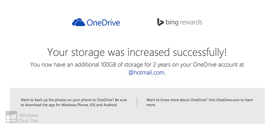 เพียงเท่านี้ก็จะได้รับพื้นที่การใช้งานบน OneDrive เพิ่มอีก 100GB แล้ว และสามารถใช้ได้นานถึง 2 ปีเลยครับ หากใครยังไม่มีดาวน์โหลดแอปฯมาติดตั้งในสมาร์ทดฟนกันเลย