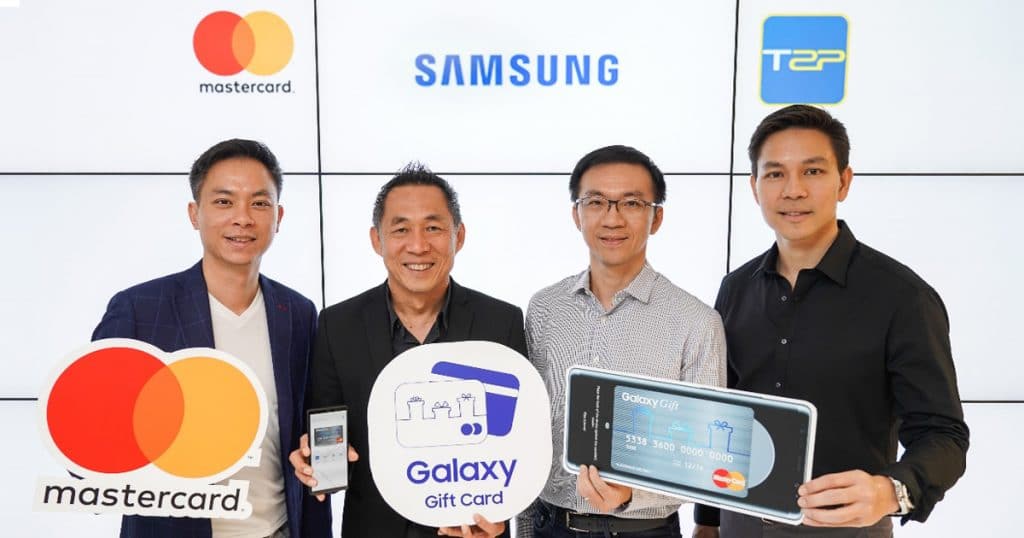 บริษัท ไทยซัมซุง อิเลคโทรนิคส์ จำกัด ประกาศความร่วมมือกับมาสเตอร์การ์ด และบริษัท ทีทูพี (T2P) จำกัด เปิดตัว “ Galaxy Gift Virtual Prepaid MasterCard ” บัตรเติมเงินบนมือถือ (Virtual Card) ใหม่ล่าสุด พร้อมการสร้างบัตรและตรวจสอบวงเงินผ่านแอพพลิเคชั่น “Galaxy Gift Card” ที่มาพร้อมกับ สมาร์ทโฟนซัมซุง กาแลคซี่ โดยผู้ถือบัตรเงินสดบนมือถือใบนี้สามารถเติมเงินตามร้านสะดวกซื้อและธนาคารชั้นนำต่างๆ เพื่อนำไปชำระสินค้าและค่าบริการต่างๆ ที่มีเครื่องหมาย MasterCard® ได้ทั้งในรูปแบบออนไลน์ และ เครื่องรูดบัตรผ่านการใช้งานร่วมกับ Application Samsungpay เพิ่มความสะดวกรวดเร็วในการชำระเงินพร้อมรับของสมมนาคุณและโปรโมชั่นพิเศษอีกมากมายจากซัมซุง