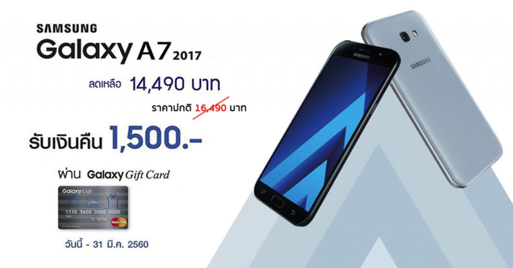 สวัสดีเพื่อนๆ ชาวซัมซุงปาร์ตี้ทุกคนค่ะ วันนี้นะคะ แอดมินก็มีข่าวคราวโปรโมชั่นของมือถือรุ่นใหม่ล่าสุดที่เพิ่งเปิดราคากันไปเป็นที่เรียบร้อยแล้วอย่างเจ้า Samsung GalaxyA7 2017 พอดีแอดมินไปเห็นป้ายลดราคาที่หน้าร้านมือถือมา ก็เลยลองไปหาข้อมูลและรายละเอียดก็เจอโบรชัวร์โปรโมชั่นจากหลายๆดีลเลอร์กำลังจัดโปรโมชั่นสุดคุ้มตัว A7(2017) อยู่จริง เลยเอามาฝากเพื่อนๆค่ะ จะมีดีลเลอร์ไหนบ้างเราไปดูกันเลยค่ะ ^^