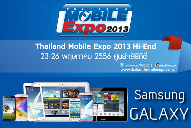 กลับาอีกครั้งกับมหกรรมมือถือที่ใหญ่ที่สุดในประเทศ Thailand Mobile Expo 2013 Hi-End ตรงกับช่วงเวลาที่เปิดตัวมือถือรุ่นเรือธงอย่าง Samsung Galaxy S4 และแท็บเล็ตตระกูล Note อย่าง Galaxy Note 8.0 พอดี ถึงแม้จะขายไปก่อนหน้าการจัดงานแล้ว แต่ก็ยังมีหลายคนที่รอเล่นเครื่องจริงและรอรับสิทธิพิเศษต่างๆ เมื่อซื้อเครื่องในงานค่ะ และยังมีรุ่นอื่นๆ จาก Samsung ที่มีโปรโมชั่นในงานด้วยเหมือนกัน เลยรวมรุ่นน่าสนใจพร้อมสรุปสเปค, ราคาและฟังกชั่นน่าสนใจคร่าวๆ สำหรับ Smartphone และ Tablet จาก Samsung ที่จะขายในงาน TME2013 Hi-End มาให้ตัดสินใจกันค่ะ