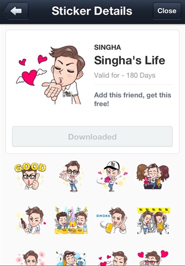 ช่วงนี้รู้สึกว่าเเอพฯแชตยอดนิยมอย่าง Line จะออกสติ๊กเกอร์ฟรีมาให้ดาวน์โหลดกันถี่เหลือเกิ๊น วันนี้ก็มีมาให้ดาวน์โหลดกันอีกเเล้วกับสติ๊กเกอร์ Singha’s Life จาก Singha นั้นเอง สำหรับสติ๊กเกอร์ Singha’s Life จะต้องทำการ add friend offcial account ก่อนถึงจะดาวน์โหลดได้ ซึ่งสติ๊กเกอร์นี้จะมีอายุการใช้งาน 180 วัน โดยสามารถเข้าไปดาวน์โหลดกันได้เลยที่ sticker shop > event  จ้า ^^
