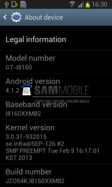 ข่าวเล็กๆ แต่เป็นข่าวดีสำหรับผู้ใช้ “Galaxy Ace 2” สมาร์ทโฟน Android ระดับกลางจาก Samsung โดย Sammobile ได้เผยภาพ FW 4.1.2 (Jelly Bean) บนรุ่นดังกล่าว ซึ่งตอนนี้อยู่ในระหว่างการพัฒนา คาดว่าจะปล่อยให้อัพเกรดได้ช่วงเดือนมีนาคม – เมษายน 2013 เบื้องต้นรหัส GT-i8160 จะได้อัพก่อนครับ (3G AIS)