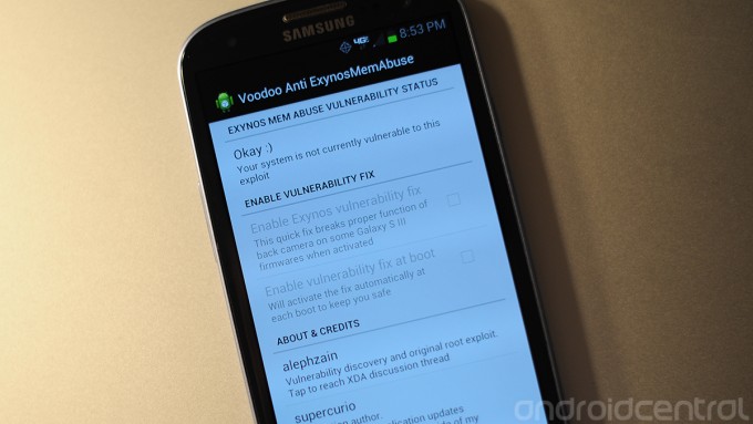 ซึ่งทำให้ช่องโหว่นี้มีทั้งข้อดีและข้อเสีย โดยข้อดีก็คือการใช้ช่องโหว่นี้สามารถทำให้รูทเครื่อง Samsung ที่ใช้ชิป Exynos ได้ง่ายมาก โดยนักพัฒนาที่ชื่อ Chainfire ได้สร้างแอพ ExynosAbuse สำหรับรูทมือถือและแท็บเล็ต Samsung ได้ภายใน 1 คลิกเท่านั้น ส่วนข้อเสียก็คือผู้ที่ใช้มือถือ Samsung ที่ใช้ชิป Exynos แล้วชอบไปดาวน์โหลดแอพแคร๊กหรือแอพเถื่อนมานั้นมีโอกาสที่จะโดนมัลแวร์ได้ง่ายขึ้นค่ะ