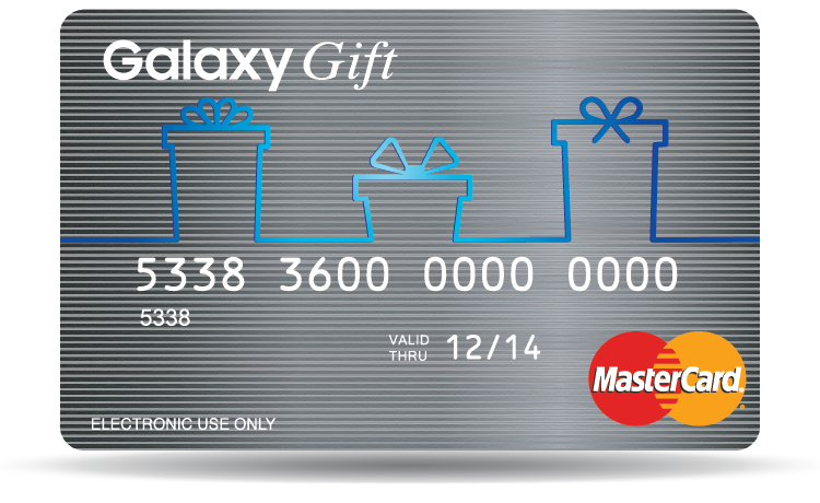 สำหรับบัตร Galaxy Gift cardถือเป็นอีกก้าวที่ Samsung จัดประสบการณ์การใช้จ่ายผ่านสมาร์ทโฟนที่ไม่เหมือนใคร โดยจะเป็นคือบัตรเงินสดที่สามารถเติมเงินเข้าไปได้ และนำไปใช้งานพร้อมรับสิทธิพิเศษต่างๆ ได้เทียบเท่ากับบัตรเครดิต Master Card ทุกประการ และบัตรนี้เป็นอภิสิทธิ์ที่มอบให้กับลูกค้าที่ซื้อสมาร์ทโฟนของซัมซุงเท่านั้น