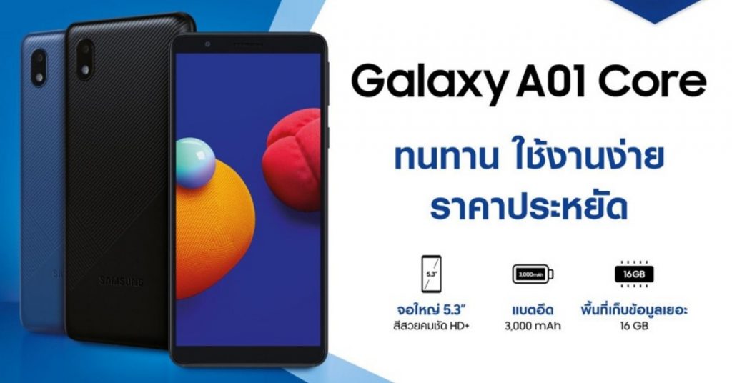 ซัมซุง เปิดตัว Galaxy A01 Core กล้อง 8MP ทนทาน ใช้งานง่าย ราคาประหยัด ราคาเริ่มต้นเพียง 2,499 บาท