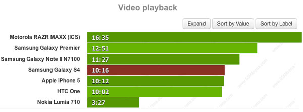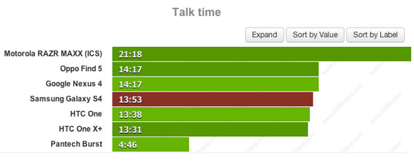 โดยจากผลการทดสอบทั้ง 3 เเบบก็พบว่า Samsung Galaxy S4 นั้นมีคะเเนนอยู่ในละดับต้นๆ เลยทีเดียวนะค่ะ ทั้งที่ได้นำเทคโนโลยีใหม่ๆ เข้ามาใช้เเต่ก็ไม่ได้ทำให้มีปัญหาเรื่องเเบตเตอรี่หมดเร็วเลย ^^