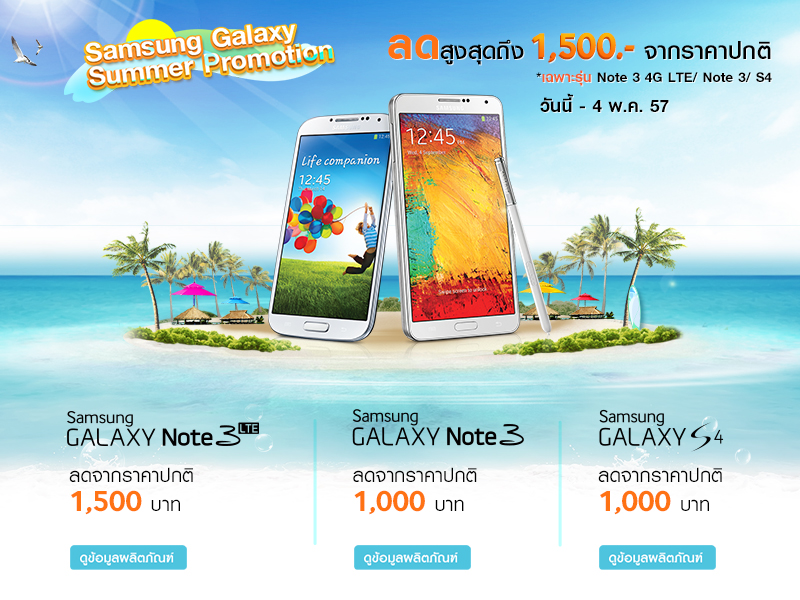 ซัมซุงจัดหนักกับโปรโมชั่น Samsung Galaxy Summer Promotion ลดราคาท้าลมร้อน ตั้งแต่วันนี้ – ถึงวันที่ 4 พ.ค. 2557 นี้เท่านั้น