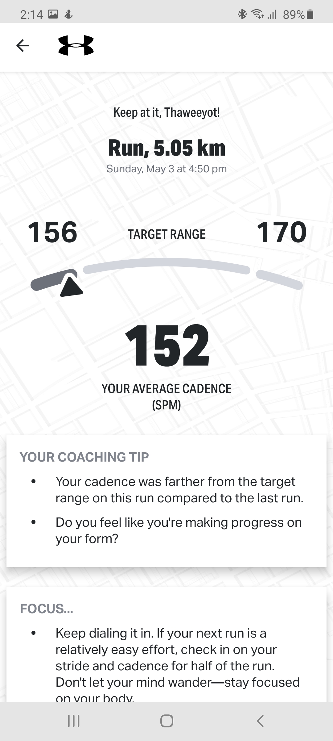 นอกจากข้อมูลการการวิ่งแล้ว จะมี Personalized coach tip แนะนำการวิ่งที่ผ่านมาของเราว่าเป็นอย่างไร อยู่ในเป้าหมายที่วางไว้หรือไม่ และควรปรับปรุงอย่างไร ฝึกซ้อมอะไรเพิ่มเติมเพื่อให้วิ่งได้ตามเป้าหมาย เรียกได้ว่าเหมือนมีโค้ชมาคอยแนะนำให้กับเราจริงๆ