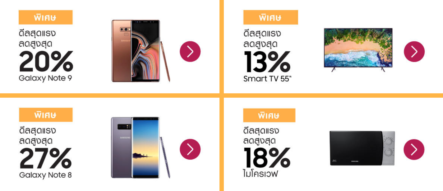 - ส่วนลดพิเศษสำหรับเครื่องใช้ไฟฟ้าภายในบ้าน พร้อมรับคูปองส่วนลดสูงสุด 15% สำหรับโทรทัศน์และเครื่องใช้ไฟฟ้าภายในบ้านอื่นๆ