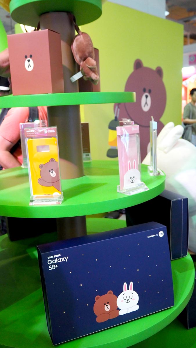 นอกจากนี้ซัมซุงและไลน์เฟรนด์ยังได้วางจำหน่ายซัมซุงกาแลคซี่เอส 8 และ S8+ พร้อมเคสในแพคเกจจิ้งสุดพิเศษเฉพาะในงานนี้ในจำนวนเพียง 300 ชุดเท่านั้น และสำหรรับผู้ที่ซื้อ Samsung Gear 360 ในงานจะได้กระเป๋า Limited Edition ลายหมีบราวน์พิเศษเฉพาะในงานนี้เท่านั้นอีกด้วยละค่ะ