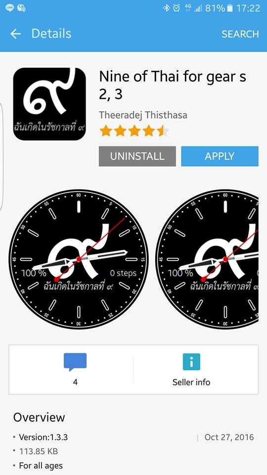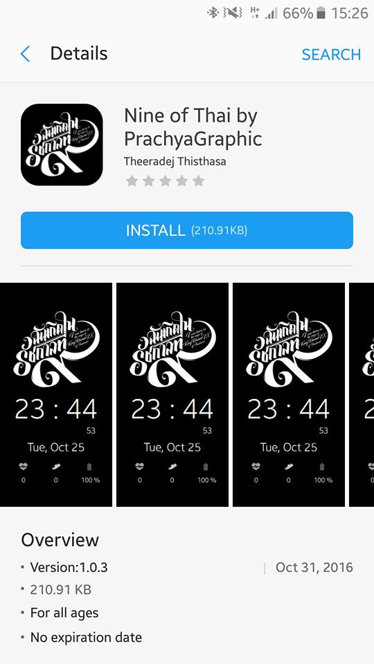 ใครที่ใช้ Samsung Gear S2 และ Samsung Gear Fit2 อยู่ สามารถเข้าไปที่ Galaxy App แล้วเข้าไปสู่หน้าของ Watchface เพื่อดาวน์โหลด โดยที่ช่วงนี้แบบหน้าปัดทั้งหมดติดอันดับต้นๆ ของสโตร์ หรือค้นหาด้วยคำว่า “Nine of Thai” ก็ได้
